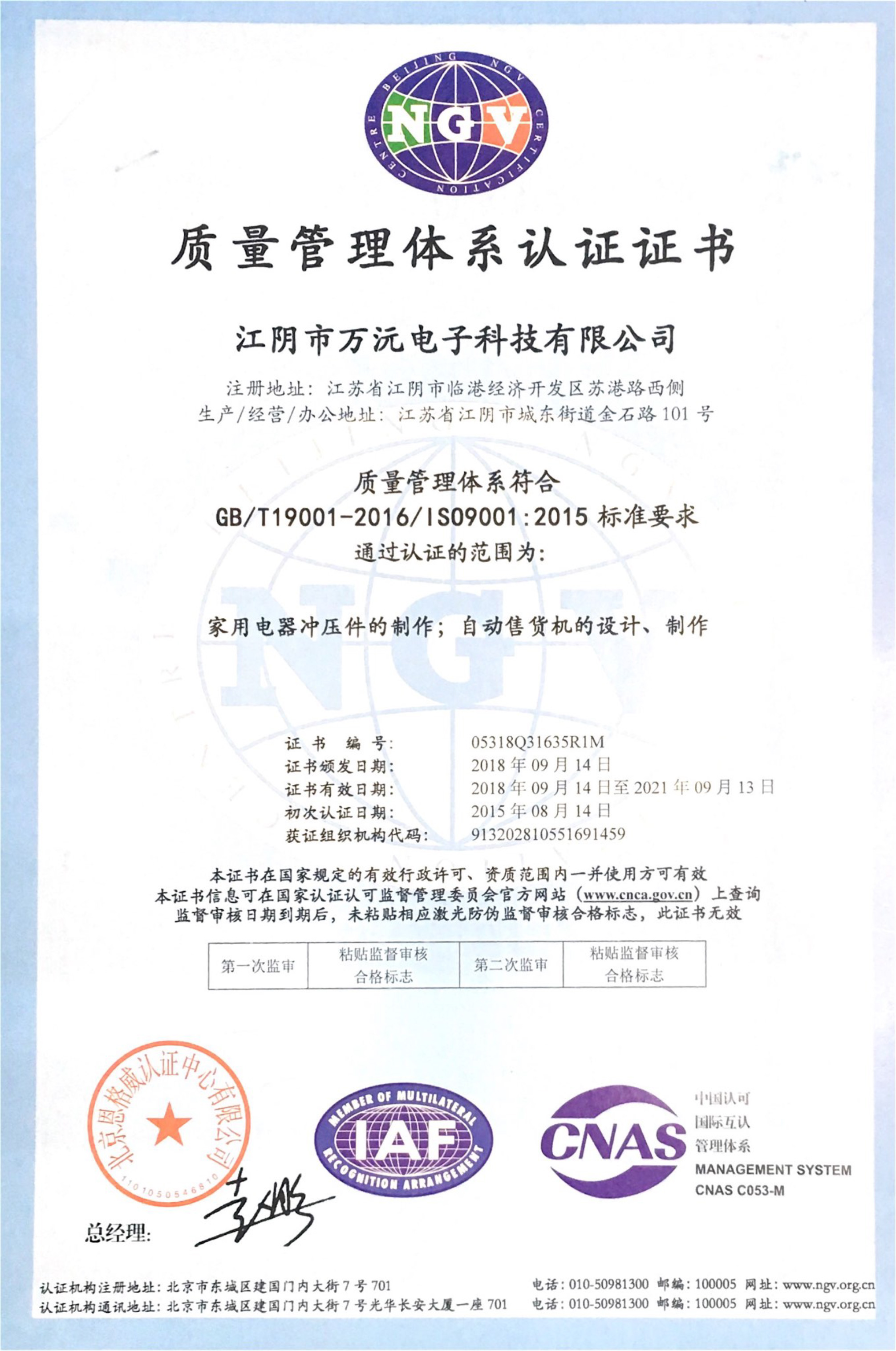 ISO9001、CE、CQC等國際權威認證。
